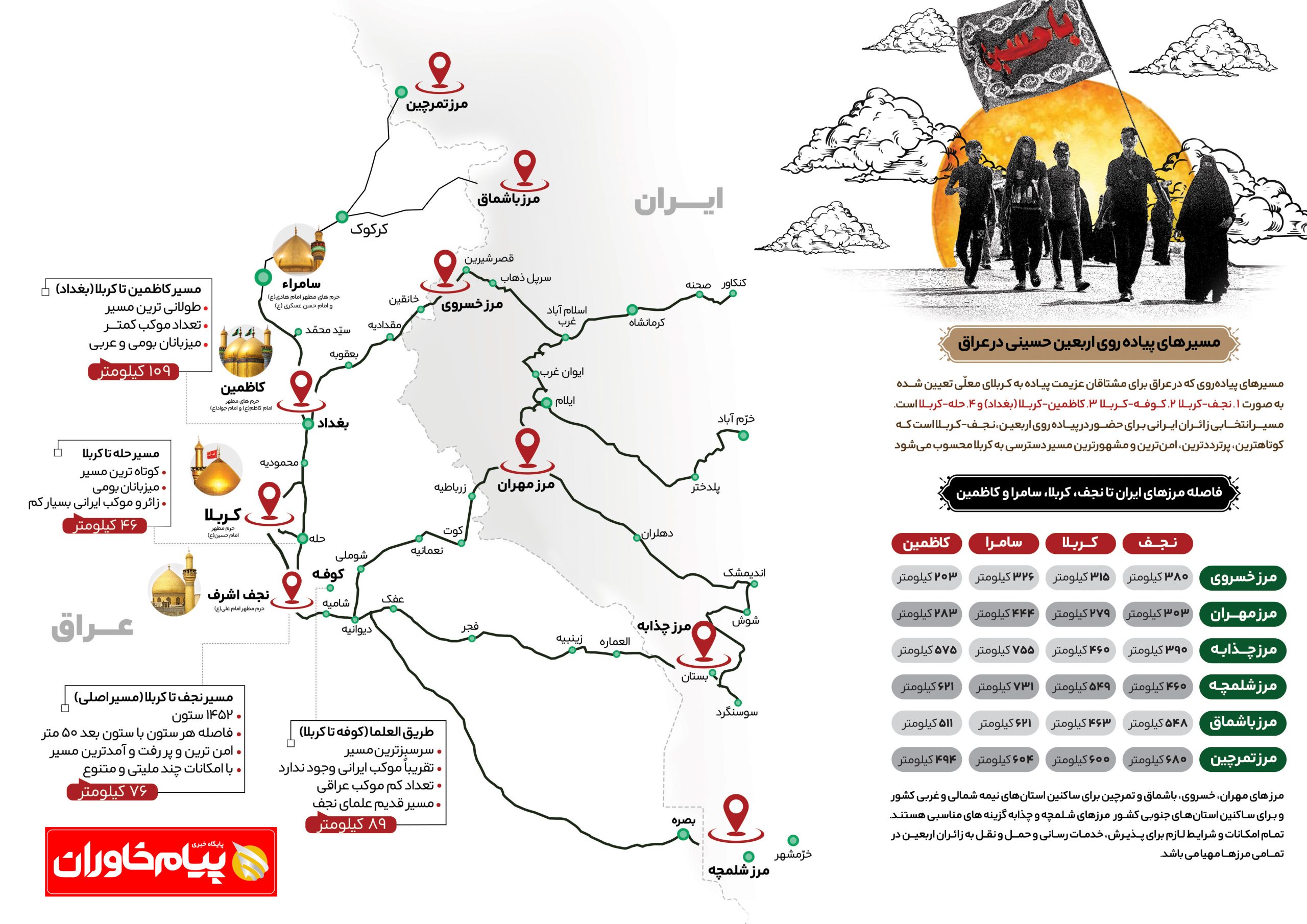اینفوگرافی | مسیرهای پیاده روی اربعین حسینی در عراق