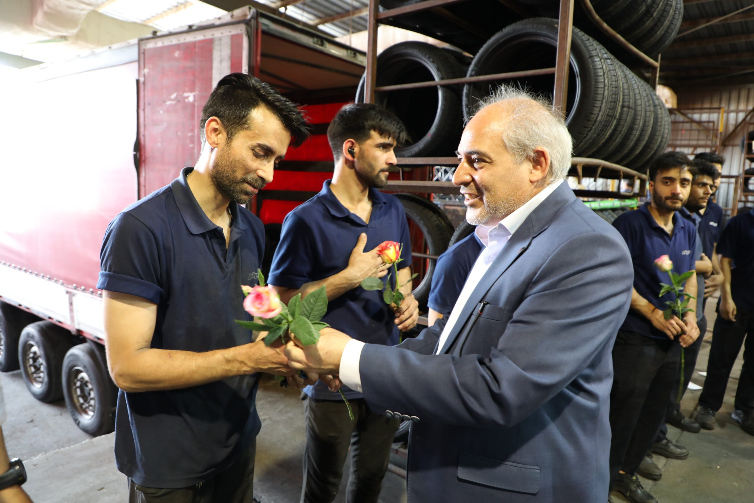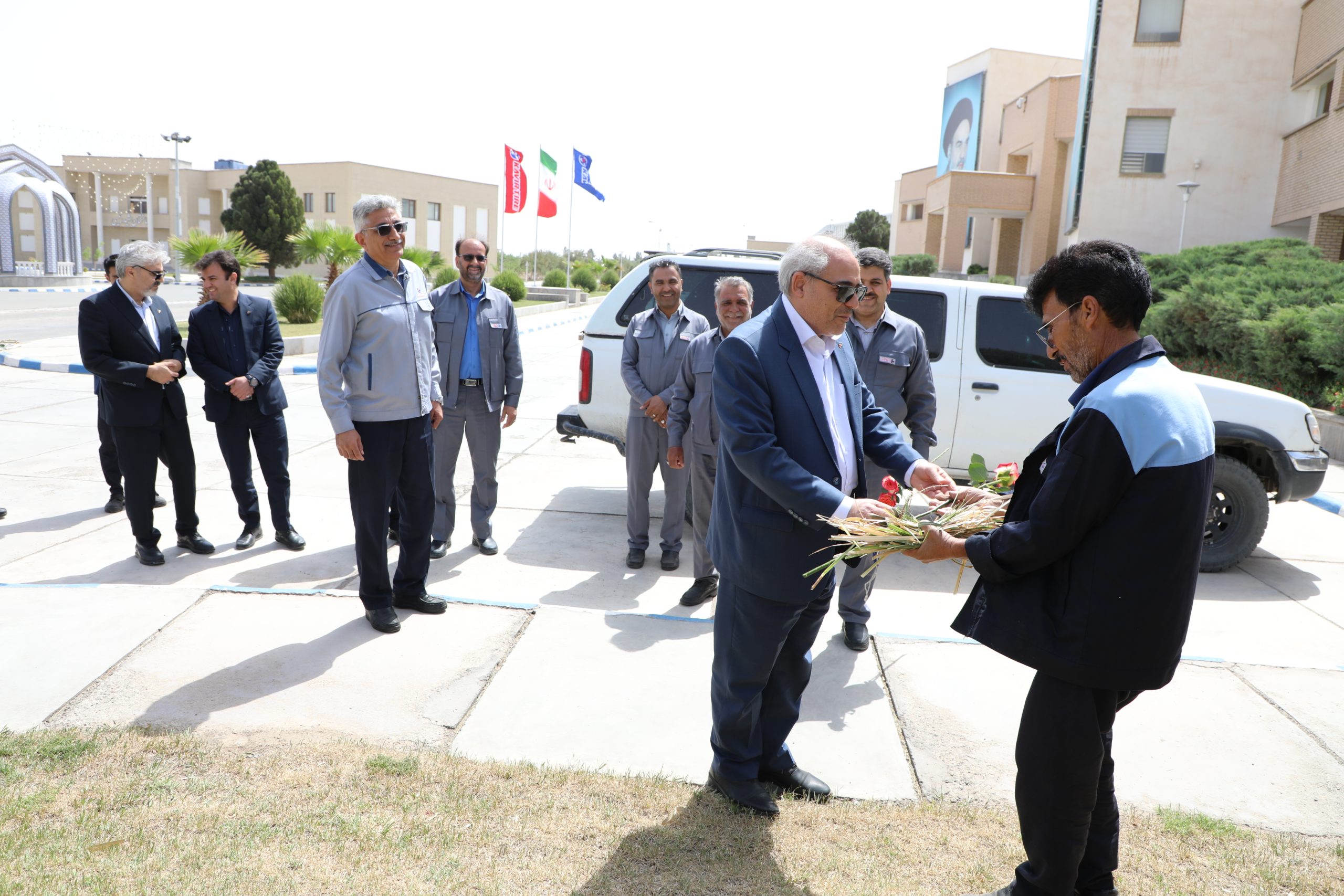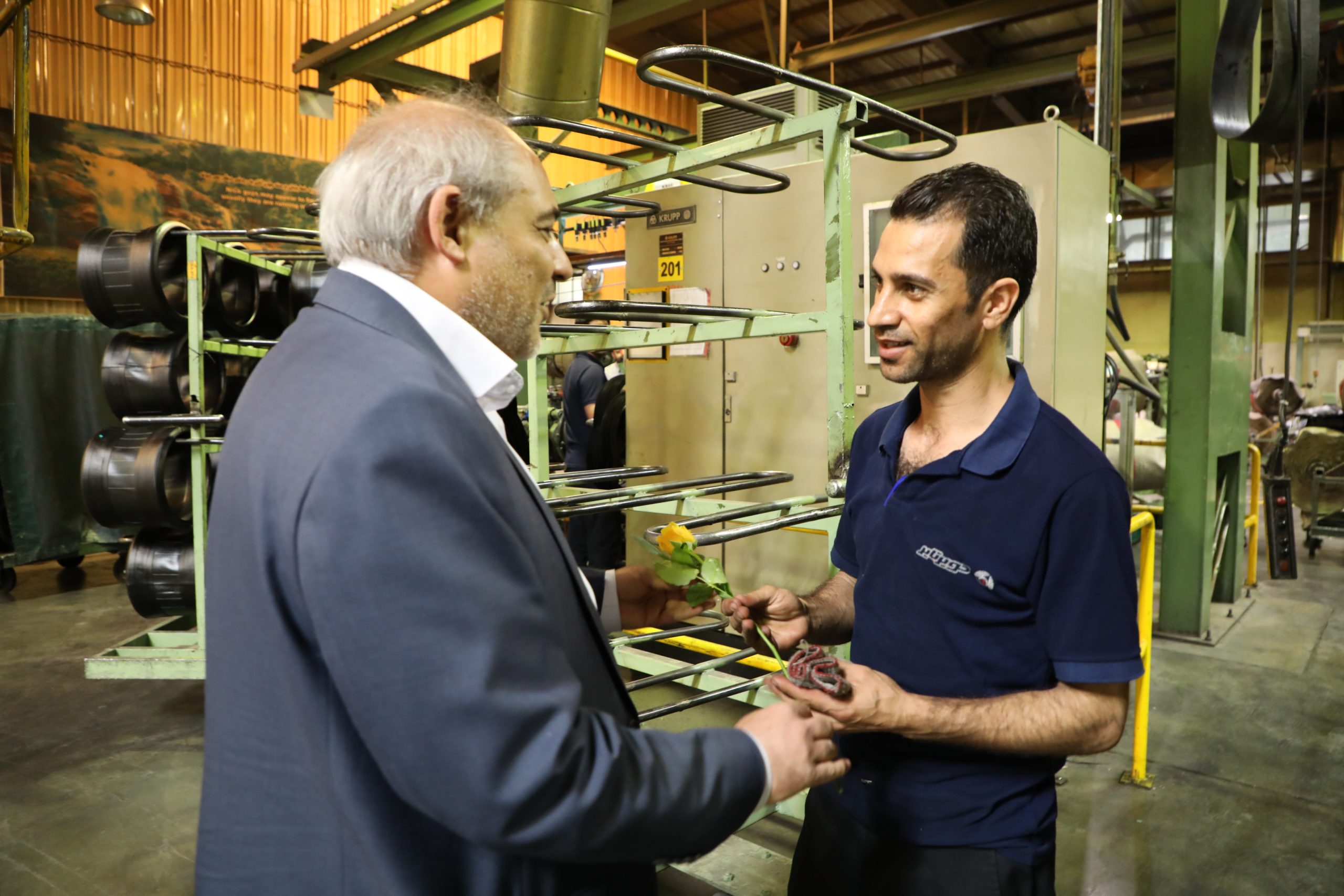 در پایان این بازدید، با اهدای شاخه گل از جمعی از کارگران کویرتایر قدردانی به عمل آمد و این حضور، نمادی از ارج نهادن به مقام والای کار و کارگر در جامعه تولیدی کشور بود.