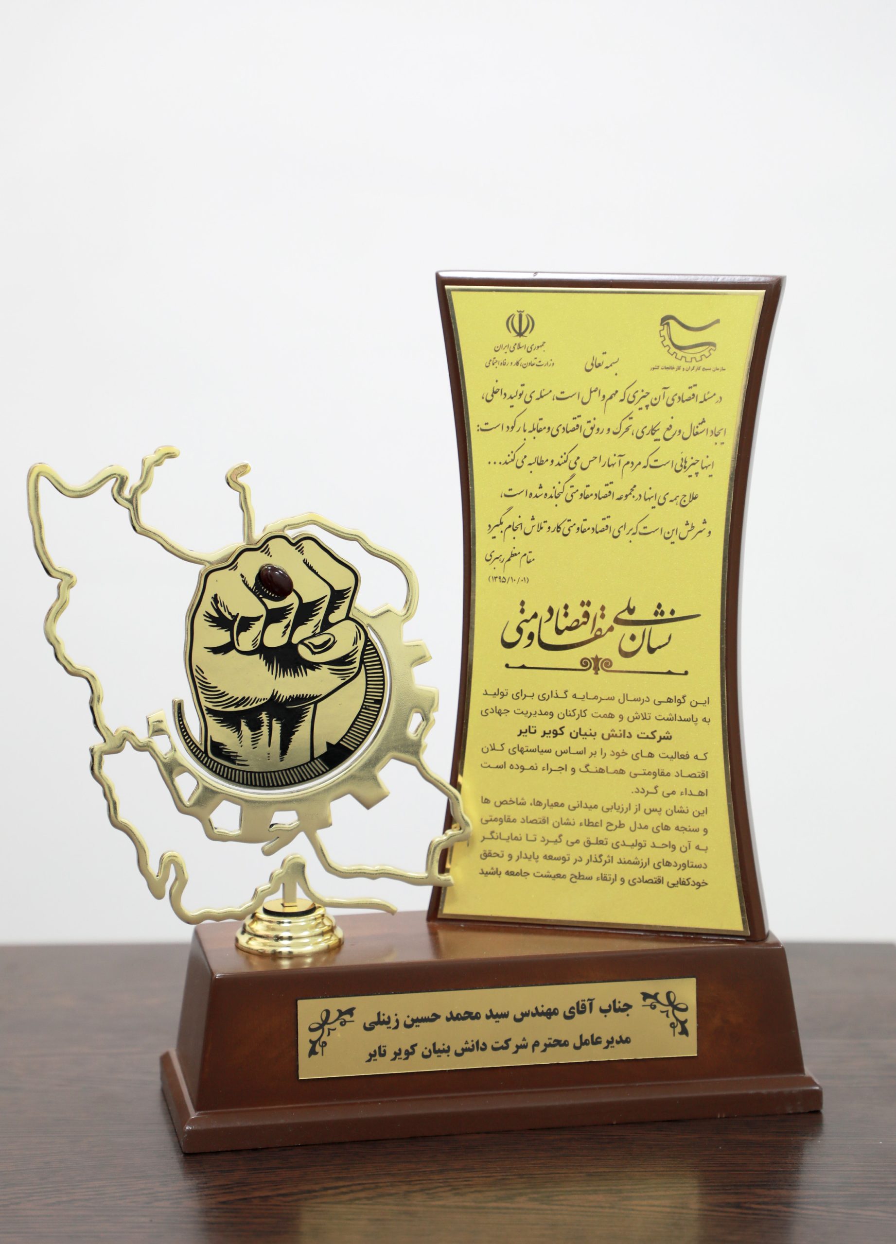 دریافت اولین نشان ملی اقتصاد مقاومتی توسط شرکت کویرتایر + عکس