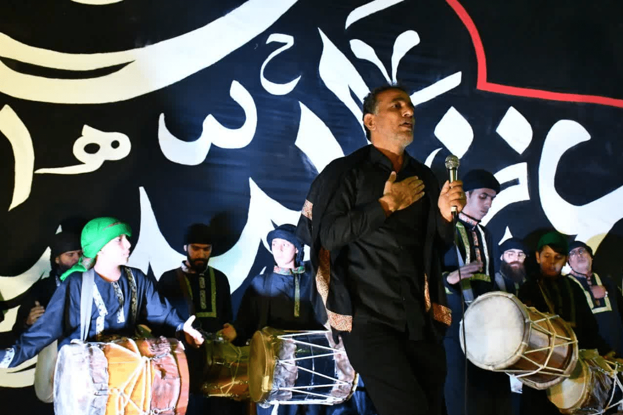 سپس نیز همه با نوای مداح اهل بیت(ع) مجتبی رمضانی همنوا شدند و جمعیت همه به عشق امام حسین(ع) بر سر و سینه کوفتند.
