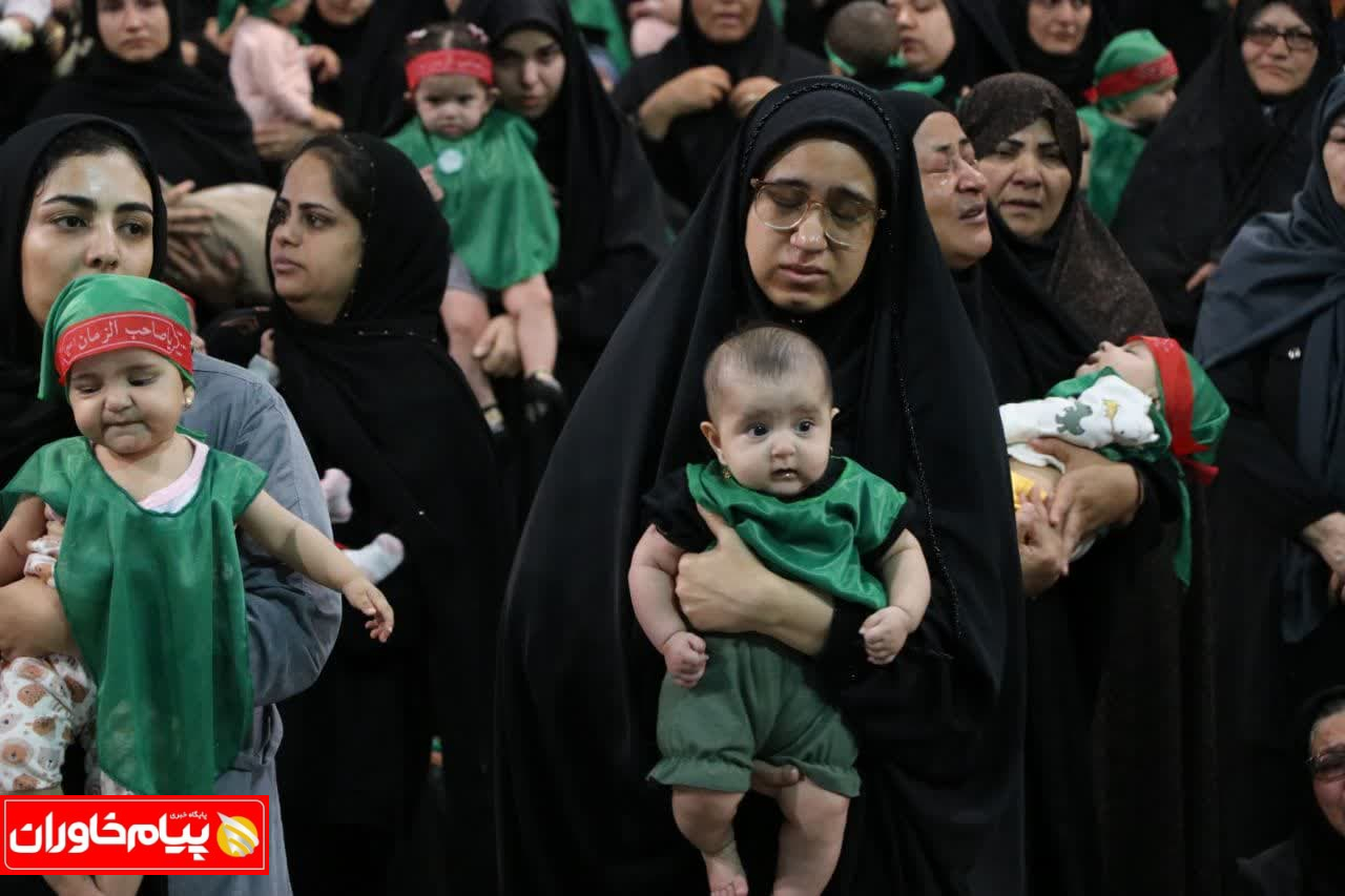 امروز مساجد و حسینیههای خراسان جنوبی، رنگ ماتم گرفته بودند. صدای لالاییها، گریه نوزادان، و زمزمههای «یا حسین(ع)»، فضای معنوی خاصی ایجاد کرده بود. مادرانی که کودکان شیرخوارهشان را در آغوش داشتند، آمده بودند تا بگویند: «یا حسین! ما و فرزندانمان فدای تو و طفل ششماههات، علیاصغر(ع).»